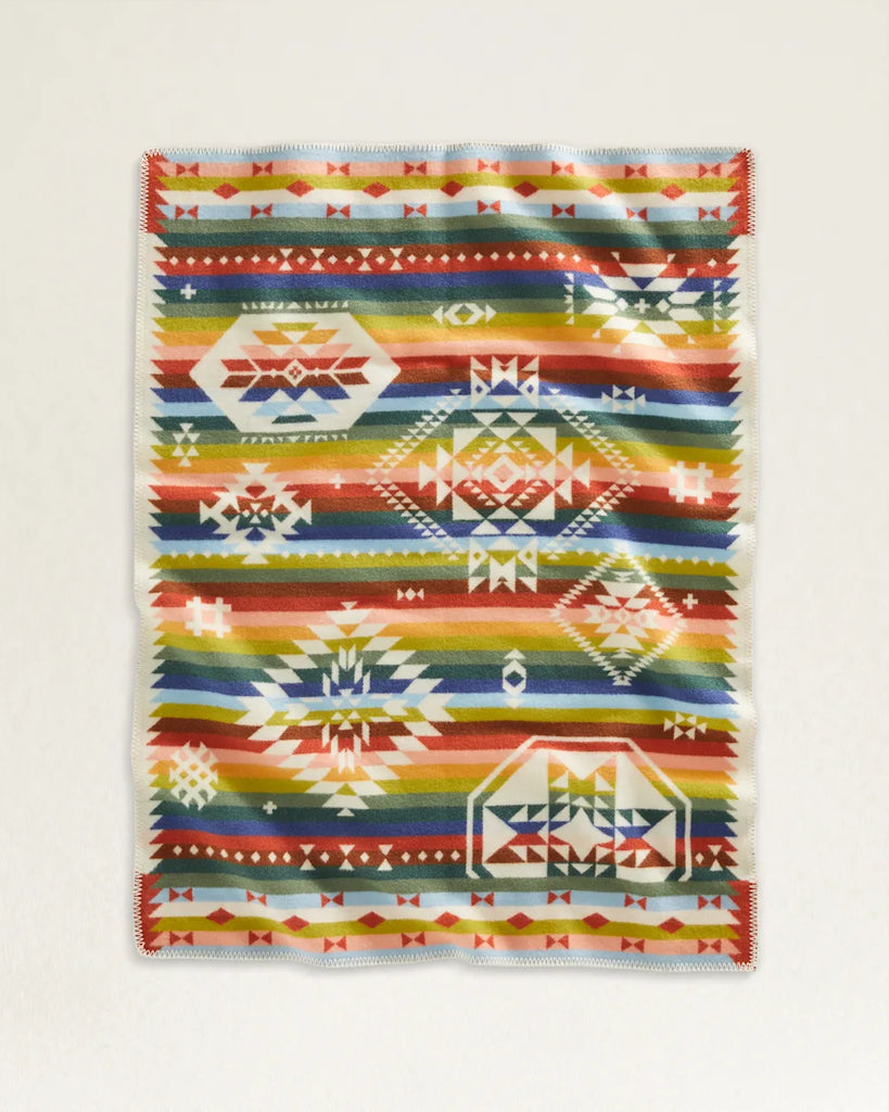 Made in America of our softest pure virgin wool, this child-sized blanket is a treasured gift (and customizable with embroidery for a personal touch). The exclusive design is inspired by the summer wildflowers of the Appalachian Plateau, and expertly woven in our Pendleton, Oregon, mill for beauty that can blossom for a lifetime.